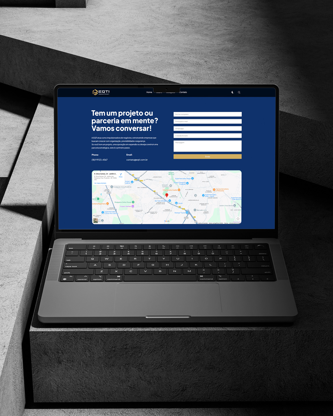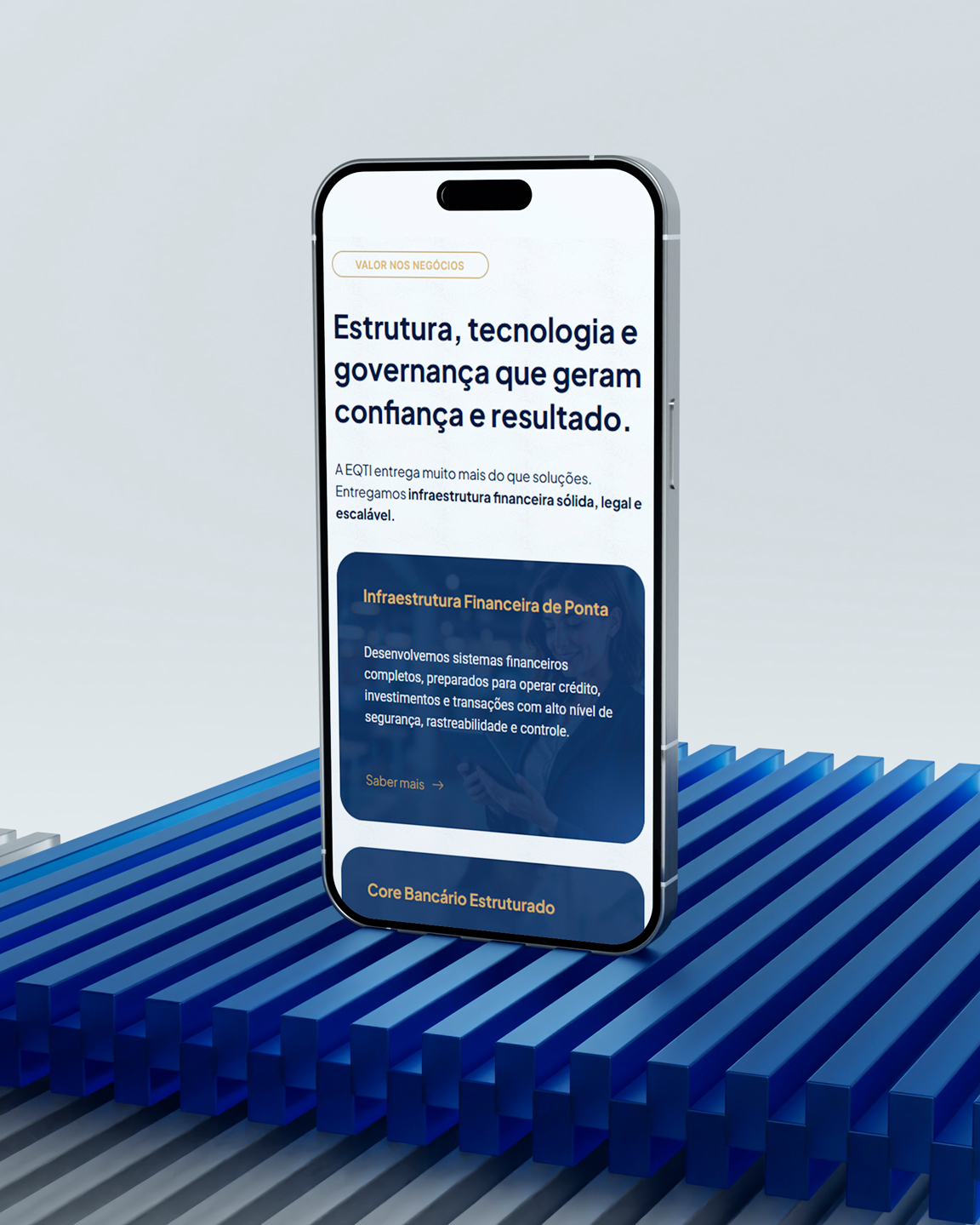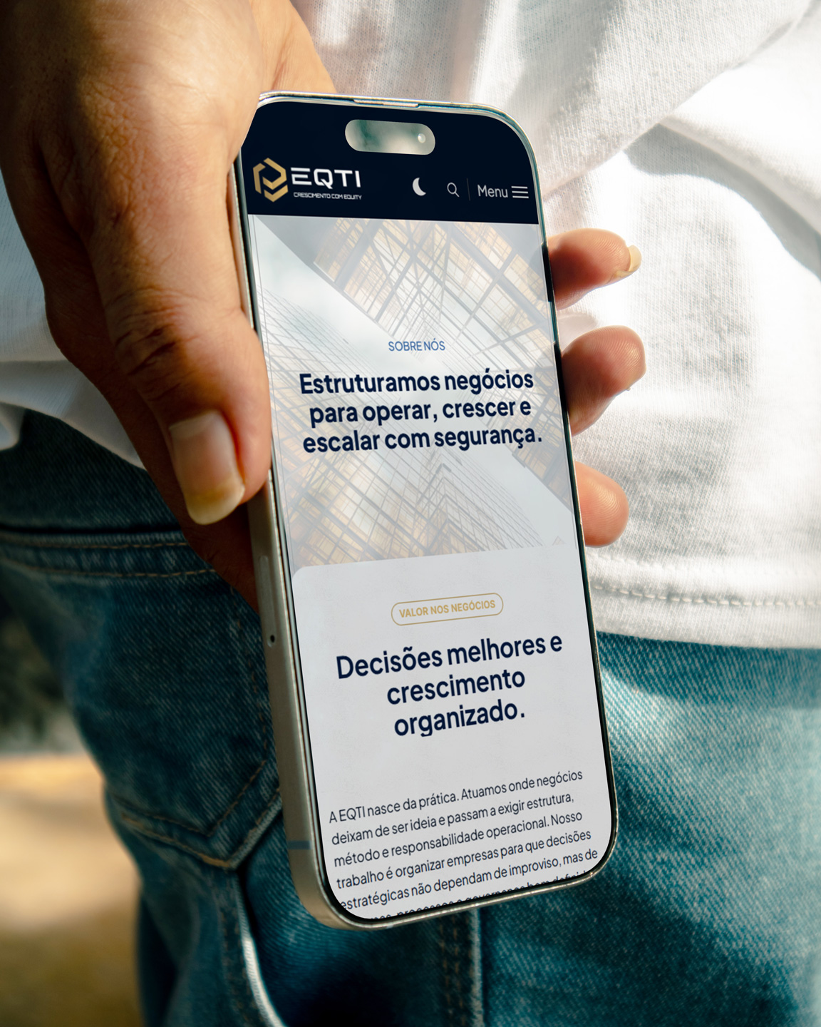 O site da EQTI foi desenvolvido para comunicar solidez, credibilidade e segurança em um mercado onde confiança não é diferencial — é pré-requisito.