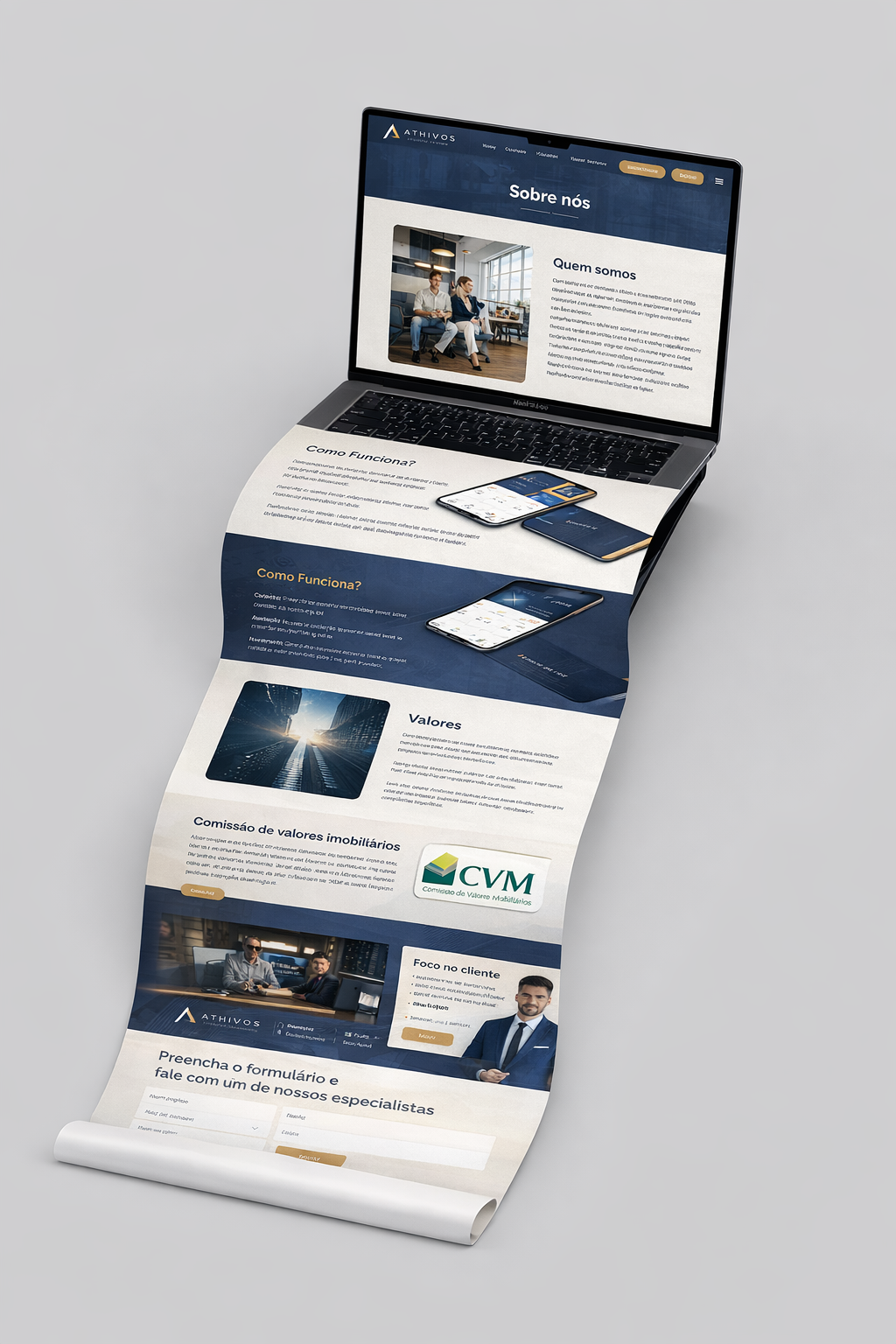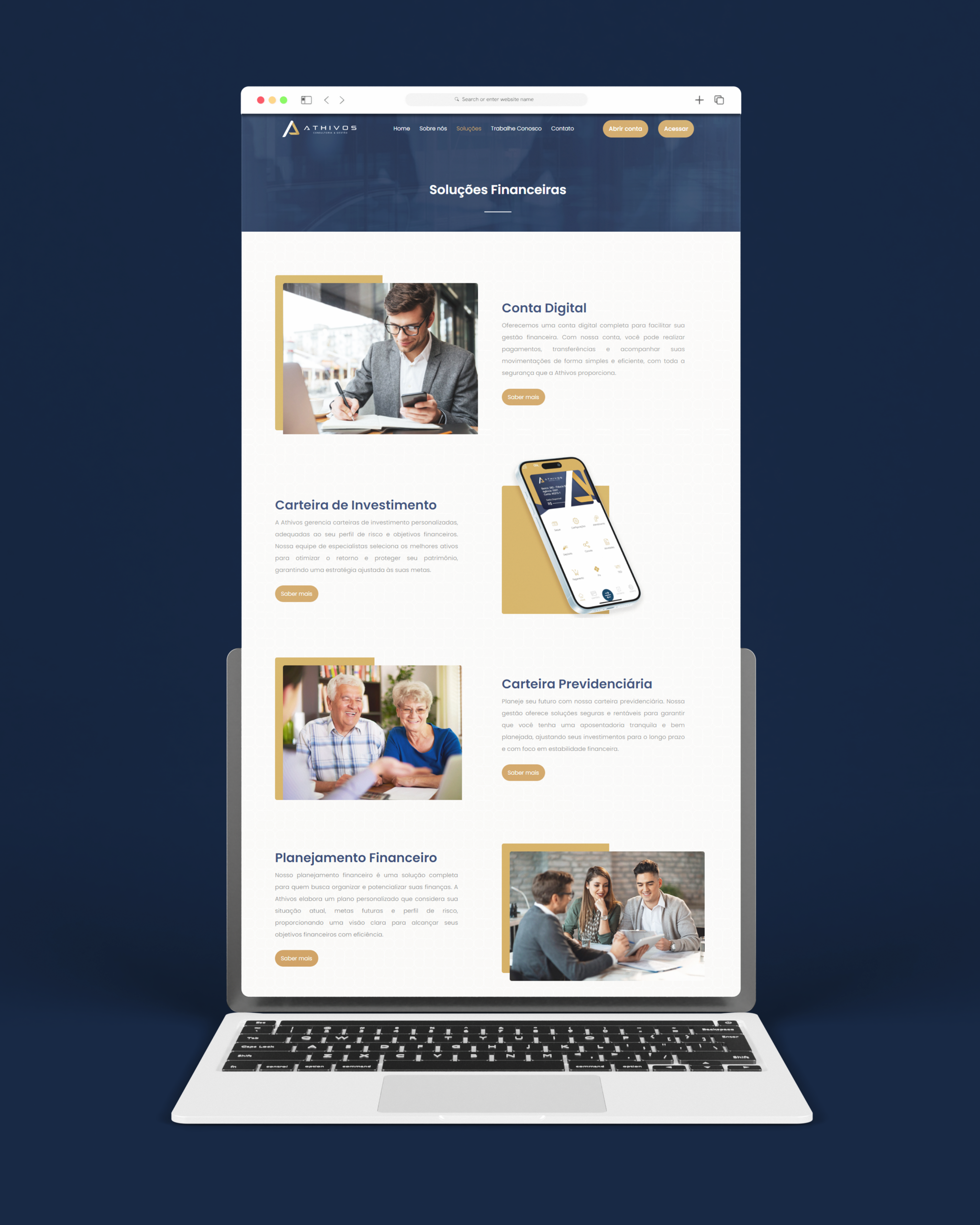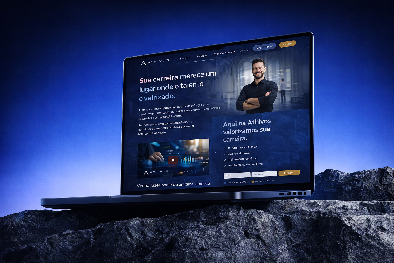 O site da Athivos foi desenvolvido para comunicar solidez, clareza e visão estratégica no mercado financeiro, traduzindo a proposta da empresa em uma experiência digital objetiva e confiável.